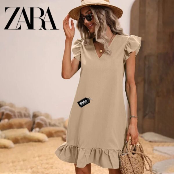 Step into summer with grace in this Zara – New Elegant Dress. Its relaxed silhouette and airy fabric make it an ideal choice for warm-weather outings, whether you’re strolling through cobblestone streets or enjoying a seaside brunch. The neutral tone complements sun-kissed skin and allows for endless accessorizing.