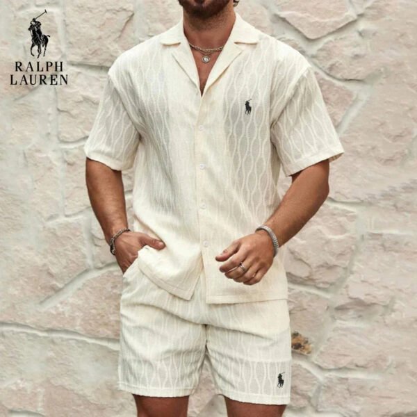 Step into effortless summer style with this Ralph Lauren shirt and shorts set. Featuring a subtly embossed texture, it adds a touch of refined originality while keeping your look modern, relaxed, and effortlessly chic.