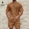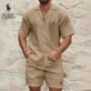Really impressed with this set. The fabric is super soft and breathable, perfect for a hot day out. The shirt and shorts together look really sharp.