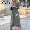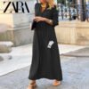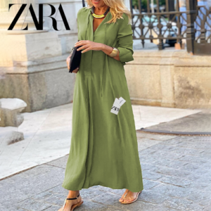 This stunning Zara – New Trendy Dress redefines urban sophistication. With its flowing silhouette and tailored bodice, it effortlessly combines comfort with a poised appearance. The long sleeves and ankle-length design make it ideal for both daytime elegance and evening charm, especially when paired with heels or sleek sandals.